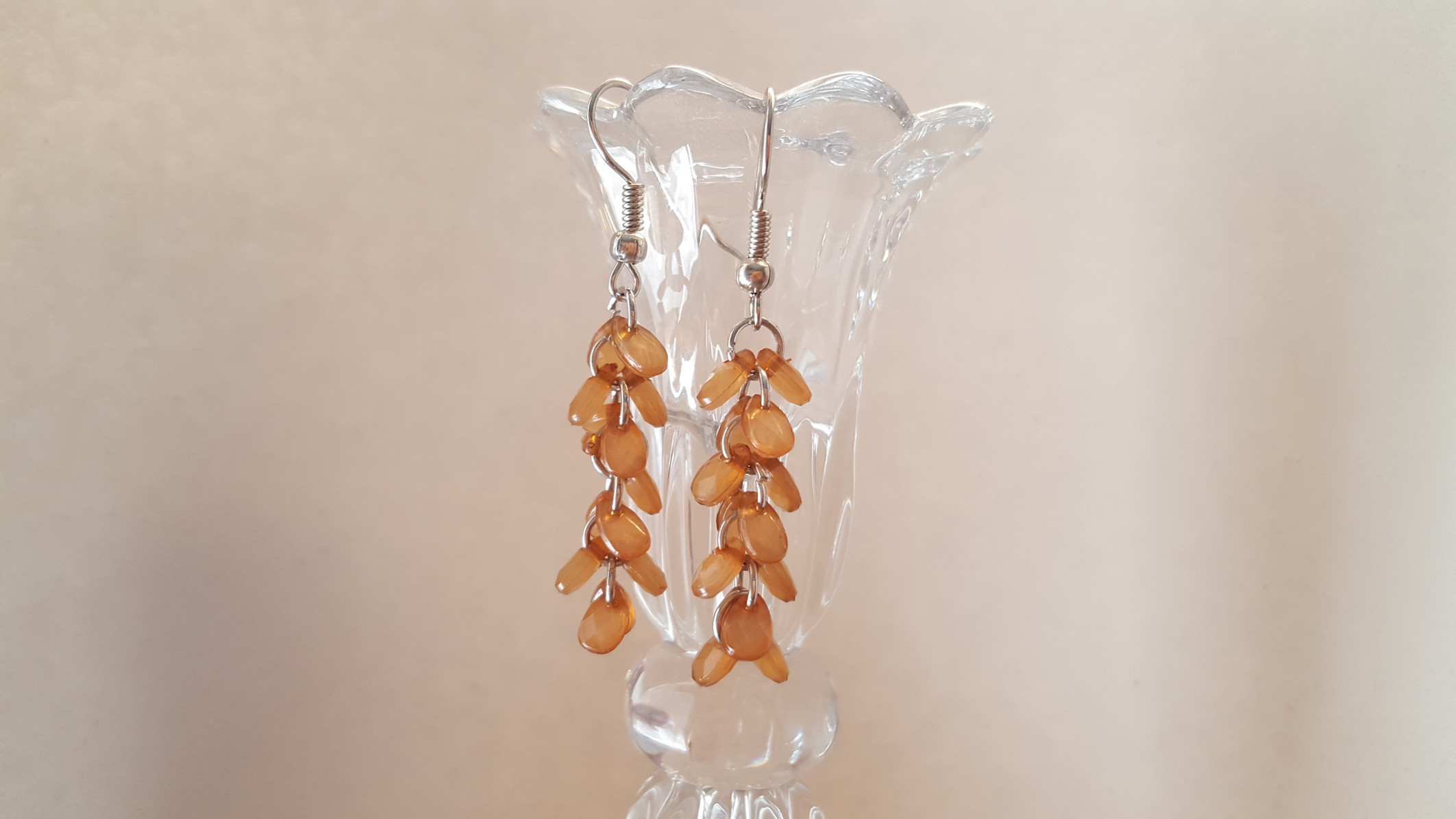 Orecchini con ciondoli a forma di goccia color ambra in materiale plastico